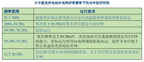 基本原則:大中型光伏電站應當做電源看待,應具備一定的耐受電網頻率和電壓異常的能力,能夠為保持電網穩定性提供支持。