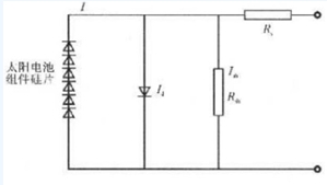 由于一個太陽電池組件一般包含36或72塊太陽電池硅片,不同的硅片的暗電流是不一樣的,由圖2所示太陽電池簡略示意圖可分析如下。