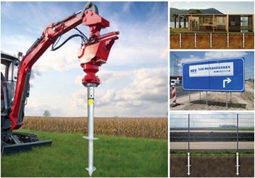 螺旋樁―一種帶螺旋葉片的金屬或非金屬材料的管樁或柱樁,利用專用設備旋擰入地下,替代混凝土獨立基礎及條形基礎,樁頂連接負載,其優點為施工快捷方便、大幅縮短施工周期、對環境友好、環保、不破壞植被、可在包括北方冬季的各種氣候條件下實施,能方便遷移及回收。