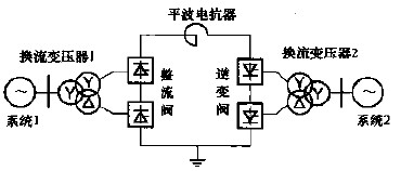 背靠背直流系統的整流站和逆變站的設備裝設在一個站內,也稱背靠背換流站。在背靠背換流站內,整流器和逆變器的直流側通過平波電抗器相連,而其交流側則分別與各自的被聯電網相連,從而形成兩個交流電網的聯網。兩個被聯電網之間交換功率的大小和方向均由控制系統進行快速方便的控制,為了降低換流站產生的諧波,通常選擇12脈動換流器作為基本換流單元。