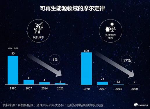 遠景認為可再生能源不是能源,而是技術。作為一個可再生能源公司,應該是一個技術型的公司。一個傳統化石能源公司的特點是什么?它的石油儲備、開發能力和供應鏈管理能力。可再生能源技術公司的特征是,背后的系統集成能力、核心研發能力和關鍵技術的突破。可再生能源,比如太陽能電池板和硅片,跟半導體有多大區別?這也解釋了為什么太陽能能夠如此迅猛的發展,我個人也非常看好了太陽能未來在中國的發展趨勢。