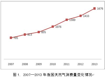這也是安排好"十三五"能源發展重大布局的重要依據之一。其中,加快天然氣發展,將成為提高能源清潔化水平和轉變能源發展方式的關鍵因素之一。圖1給出了2007-2013年我國天然氣消費量變化情況,年均增速達到15.5%。同期,天然氣消費比重也從3.3%增加到5.5%。"方案"提出,2015年、2017年全國天然氣供應能力分別達到2500億立方米和3300億立方米,天然氣(不包含煤制氣)消費比重分別提高到7%和9%以上。2014~2017年我國天然氣消費量年均增速為18.3%,比2011-2013年均增速快40%。根據國務院辦公廳轉發的《關于建立保障天然氣穩定供應長效機制的若干意見》,2020年我國天然氣供應能力達到4000億立方米,力爭達到4200億立方米。"十三五"時期,天然氣供應能力年均增長19%,將有力支撐天然氣在對煤炭替代、天然氣分布式能源和調峰電站建設等方面發揮重要作用。