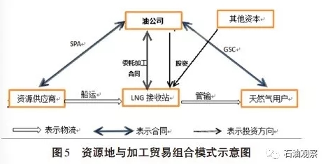 商務上,油公司在國際市場上根據市場環境和議價條件與上游資源供應商達成了LNG長期照付不議資源供應協議;LNG 項目公司提供接收站服務;同時油公司在市場銷售安排中可以根據市場需要在合同期、合同量等方面作出靈活安排,以滿足用戶的不同需求。但油公司需要承擔較大的資源購銷風險,油公司作為資源統一購買者和市場統一調配者,不但要承受資源的照付不議風險、價格風險,購買的資源是否為市場所接受的風險。