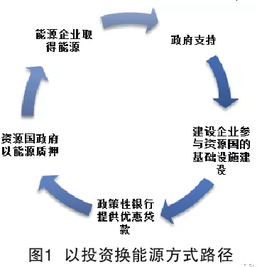 以投資換能源方式遵循“政府支持—建設企業參與資源國的基礎設施建設—政策性銀行提供優惠貸款—資源國政府以能源質押—能源企業取得能源”的路徑。以投資換能源方式依托機制化運作,形成兩國政府、政策性銀行、參與企業互動的循環過程。具體如圖1所示。
