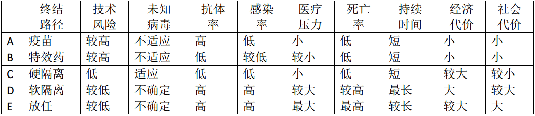 五種路徑各有其風險點,差別更多地在于經濟社會及生命的代價,其中,