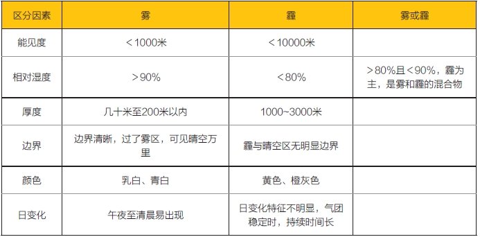 認(rèn)定霧和霾,氣象部門(mén)有不同的指標(biāo)。