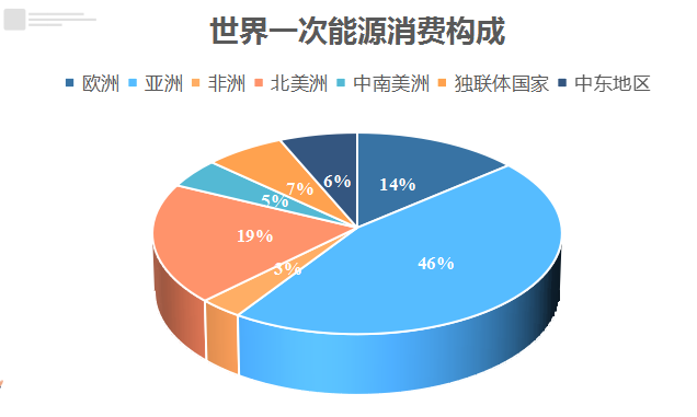 在世界能源發(fā)展中,由于中國、印度兩大發(fā)展中國家的經(jīng)濟快速增長,亞洲成為全球能源消費的中心,據(jù)BP世界能源統(tǒng)計年鑒顯示,一次能源消費方面,亞洲能源消費在世界一次能源消費總量中占比達到46%,北美洲占全球一次能源消費的19.4%,歐洲的能源消費占比為13.9%。