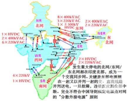 印度重大停電的關鍵首先是電網結構問題,雖然已分為5個網區,但都不像中國的區間僅用直流聯網,正常時既可互相交換電力,但事故時都不會將故障或失穩振蕩連鎖反應到鄰區,這才是安全分區的主要目的。但印度各網區間的互聯除了直流外、還有交流,就完全失去了區間僅以直流聯網的安全作用。印度電力部長辛德在大停電后表示,“2014年印度電網將全部實現互聯互濟,屆時這種停電不會再出現”。其實現在印度就已全國聯網,重大停電的關鍵問題是仍然用交流聯網。國網公司強行的“三華聯網”就是將原僅以直流聯網的華北、華東、華中三個分區,采取極不安全又極其浪費的交流特高壓合成一個特大區, 相當走向印度重大停電道路。