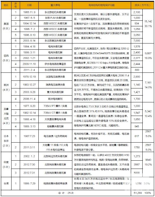 印度事故后,全世界上共發生了25次電網重大停電(每次損失≥800萬千瓦)。