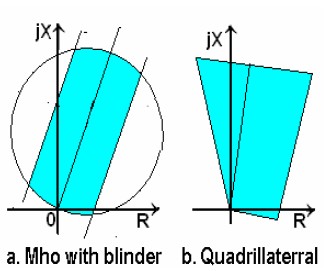 我國(圖4)從保護技術上有很強的防止負荷轉移“連鎖跳閘”能力,作為后備的距離保護原理,由易過負荷誤動的方向阻抗圓改進為四邊形等措施并縮短其保護范圍,以防止過負荷“連鎖跳閘”,線路永久性故障時,切除部分送端機組以降低剩余線路的過負荷,基本解決了負荷轉移“連鎖跳閘”問題。