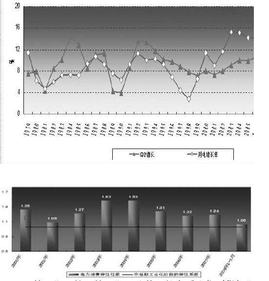 三輪周期,第一輪周期是改革開(kāi)放之后我們叫做短期經(jīng)濟(jì)時(shí)期,那個(gè)時(shí)候主要是滿足電力有沒(méi)有問(wèn)題,第二周期是電力需求,全國(guó)需求拉動(dòng)性的過(guò)程。終于吃飽飯了,想想需求了,這個(gè)時(shí)期我們的電力有較大的發(fā)展,而且國(guó)力逐步增強(qiáng),到了亞洲金融危機(jī)之后,我們?nèi)谌肓藝?guó)際大社會(huì),是資源經(jīng)濟(jì)輸出時(shí)期的過(guò)程,省輸出、國(guó)際輸出正處于這樣的時(shí)期。這三個(gè)時(shí)期的結(jié)構(gòu)不一樣,用電的結(jié)構(gòu)也不一樣。自然資源輸出,高耗能占了比較大的比例,這個(gè)時(shí)候,短期的情況是首先要解決重工業(yè)蓋房子,所以鋼鐵也占了很大的比例。總體來(lái)講,三個(gè)周期同比進(jìn)行是這樣的規(guī)律,而且亞洲金融危機(jī)時(shí)期回調(diào)大概是三年的過(guò)程。