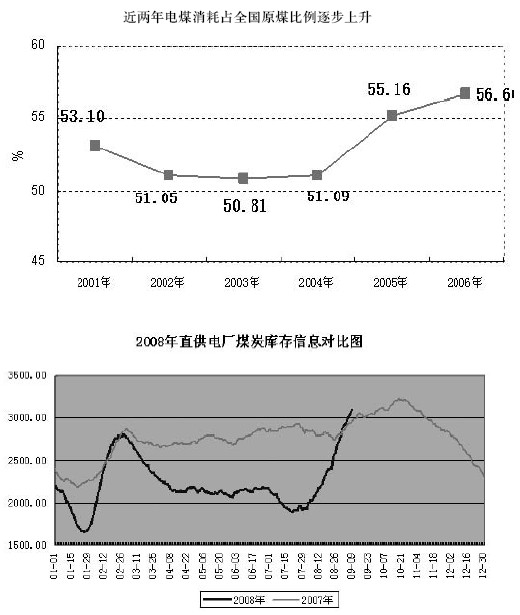 近兩年電煤消耗占全國(guó)原煤比例逐步上升目前這樣的情況下電煤今年的形勢(shì),盡管目前電煤形勢(shì)暫緩了,據(jù)我們判斷電煤仍將是長(zhǎng)期形成對(duì)電力的制約因素。這里面,一是電煤占全部電力的比例在逐步提高,但這并不是真正的提高,我調(diào)研了一下情況,原來(lái)的很多電煤是很多小煤窯,沒(méi)有統(tǒng)計(jì)進(jìn)去,表觀看不見(jiàn)?,F(xiàn)在小的沒(méi)有了,把統(tǒng)計(jì)的比例提高了,其實(shí)比例是差不多的。