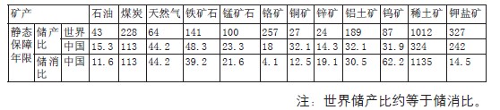 表1-1 中國及世界主要礦產資源的靜態保障程度