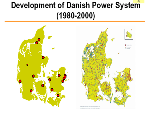 丹麥從1980年少數大電廠發展到2000年星羅棋布的分布式熱電廠