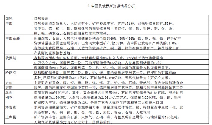 一.中亞及俄羅斯國情國力分析