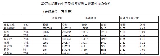 1.從中亞及俄羅斯大量組織資源性產品進口,進一步提升了新疆的貿易地位