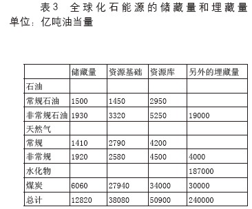 國際應用系統分析研究所(IIASA)與世界能源理事會(WEC)1995年完成的“2050年以后時期全球能源展望”中說:我們預計未來能源基礎還會不斷擴大,但是沒有人可以預測出市場條件、知識水平、勘探方法和生產技術會如何變化。我們不能用簡單的方法和單純的數字來表述能源資源這樣復雜的概念。表3中儲藏量是指能源資源中目前可開發的部分,即在現有市場條件和利用現有技術水平可以開發的資源量。資源基礎包括那些隨著技術發展,經濟上有競爭力的、有潛在可開發的(2020年后)的資源。資源庫是儲藏量與資源量基礎之和。從表3所列出的化石能源為1.3萬億噸油當量,而資源庫量則達到5萬億噸油當量,這么多的化石能源至少可以使用100年。因此盡可能在21世紀的百年中可能會出現機構性能源不足,但是絕對資源總量不會短缺,所以擔心是積累碳排放的增加。因此我們如果能夠解決化石能源應用中的污染和碳排放問題,繼續使用化石能源是不成問題的。具體數字如表3。