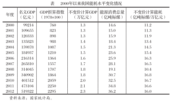 從橫向比較方面看,由于發展階段不同,我國經濟發展粗放程度較高,能源消耗水平偏高,環境污染嚴重。數據顯示,我國單位GDP能耗是世界平均水平的2倍,是美國的2.4倍,日本的5倍,高于巴西、墨西哥等發展中國家。從縱向比較方面看,我國自2000年以來以不變價格計算的單位GDP能耗總體上漲,最近兩三年才出現平穩下降趨勢(見下表)。能耗水平高是我國能源消費快速增長、形成過高的對外依存度的主要原因,也是潛在的影響國家能源安全的因素。