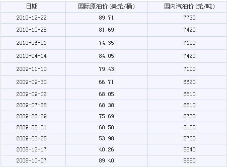 通知指出,其他成品油價(jià)格相應(yīng)調(diào)整。非標(biāo)準(zhǔn)品價(jià)格由成品油生產(chǎn)經(jīng)營(yíng)企業(yè)按照國(guó)家規(guī)定的品質(zhì)比率確定。[詳細(xì)]| 歷次成品油價(jià)格調(diào)整一覽(元/升) | ||