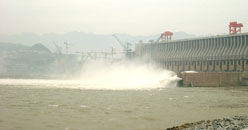 世界第一大的水電工程,位于西陵峽中段的湖北省宜昌市境內的三斗坪,距下游葛洲壩水利樞紐工程38公里。三峽大壩工程包括主體建筑物工程及導流工程兩部分,工程總投資為954.6億元人民幣。于1994年12月14日正式動工修建,2006年5月20日全線建成。三峽工程是迄今世界上綜合效益最大的水利樞紐,在發揮巨大的防洪效益和航運效益外,其1820萬千瓦的裝機容量和847億千瓦時的年發電量均居世界第一,三峽大壩榮獲中國世界紀錄協會世界最大的水利樞紐工程世界紀錄。