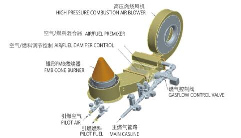 為響應(yīng)國家節(jié)能環(huán)保的號召,尤其是滿足北京地標(biāo)的要求(NOx≤30mg/m³),克雷登領(lǐng)先一步,在標(biāo)準(zhǔn)正式出臺前,歷時兩年,投入大量人力財力,在充分的市場調(diào)研和反復(fù)實驗對比下,結(jié)合克雷登產(chǎn)品特點,針對燃?xì)忮仩t與油氣兩用鍋爐分別研發(fā)出兩種低氮燃燒方案:新型錐形FMB燃燒系統(tǒng)以及煙氣再循環(huán)系統(tǒng);錐形FMB燃燒系統(tǒng)中,空氣與燃?xì)庠陬A(yù)混合室與空氣/燃料調(diào)節(jié)器內(nèi)充分混合,通過預(yù)混合集氣室與燃燒器集氣管導(dǎo)入燃燒器,此系統(tǒng)能夠以近似4:1調(diào)節(jié)比進(jìn)行自動調(diào)節(jié)控制,使煙氣排放物中NOx含量控制在30mg/m3以下;而采用煙氣再循環(huán)系統(tǒng)時,同時調(diào)節(jié)進(jìn)風(fēng)量和引煙氣量,當(dāng)兩者達(dá)到某一比值時,燃燒所產(chǎn)生的煙氣中NOx含量會很低,遠(yuǎn)小于我國標(biāo)準(zhǔn)排放值。該低氮燃燒器及其排放系統(tǒng)最大的突破在于可適應(yīng)不同負(fù)載需要,充分滿足用戶的不同需求;同時保證了燃燒熱效率,減少了NOx的排放;而且設(shè)備結(jié)構(gòu)相對簡單明了,安裝維護(hù)方便。