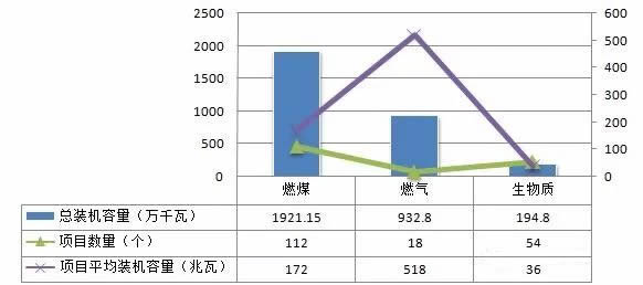 1.新核準熱電聯產項目燃煤最多,燃氣平均裝機規模最大