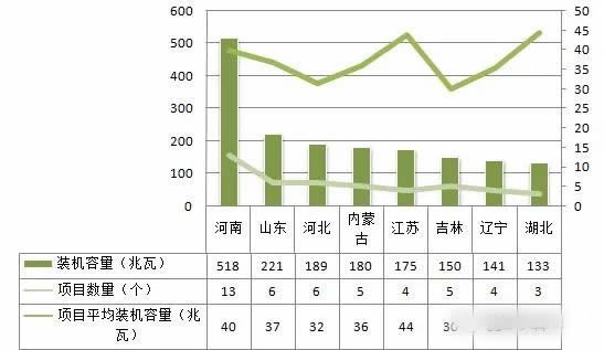 新核準生物質熱電聯產項目54個,總裝機規模194.8萬千瓦。項目最多和裝機規模最大的地區是河南省。生物質熱電聯產以小型裝機為主,平均裝機規模只有36兆瓦。裝機容量在100兆瓦以上的地區如下: