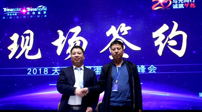 火爆的簽約現(xiàn)場,記者隨機采訪到一位河北客戶,了解到他之前是天合的用戶,用過天合的產(chǎn)品,感覺質(zhì)量非常好,這次知道天合富家來河北石家莊開招商會,二話不說便拿下了當?shù)氐拇頇?quán)。還有經(jīng)銷商則表示,自己是帶著任務來參會的,來之前在老家已經(jīng)有10家用戶向他預定了天合原裝家用光伏系統(tǒng)了,這次過來得趕緊簽完約帶回家。