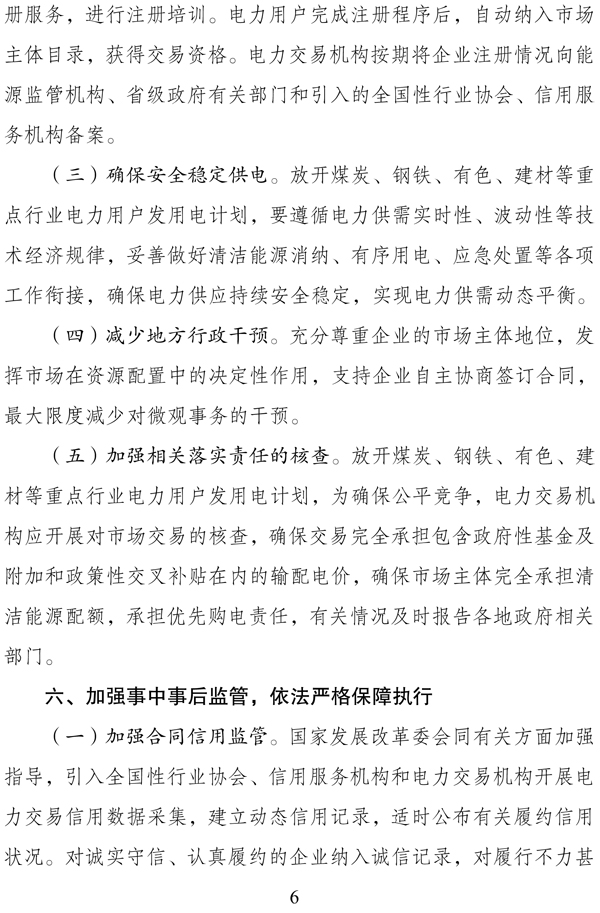 (五)電力交易機構要加強自身能力建設,搭建公開透明、功能完善、按市場化方式運行的電力交易平臺,發揮市場在能源資源優化配置中的決定性作用。要切實發揮好電力交易機構在市場交易核查工作中的第三方監管作用,保證各類主體市場交易行為有序規范。