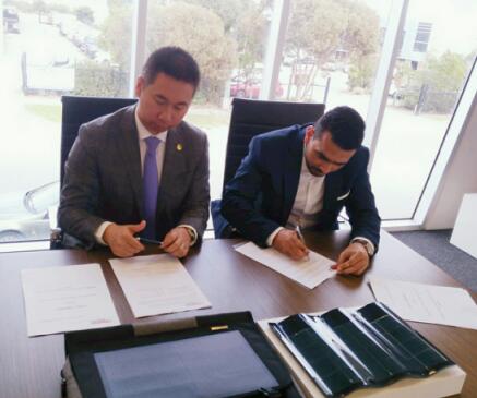7月26日,漢能與Integra能源在澳大利亞墨爾本簽署關于每年4兆瓦漢能Solibro薄膜太陽能組件,以及每年500千瓦漢瓦屋頂整體解決方案的預售協議。漢能薄膜發電集團副總裁兼全球海外銷售集團CEO呂遠與Integra能源CEO出席儀式并正式代表雙方簽署協議。