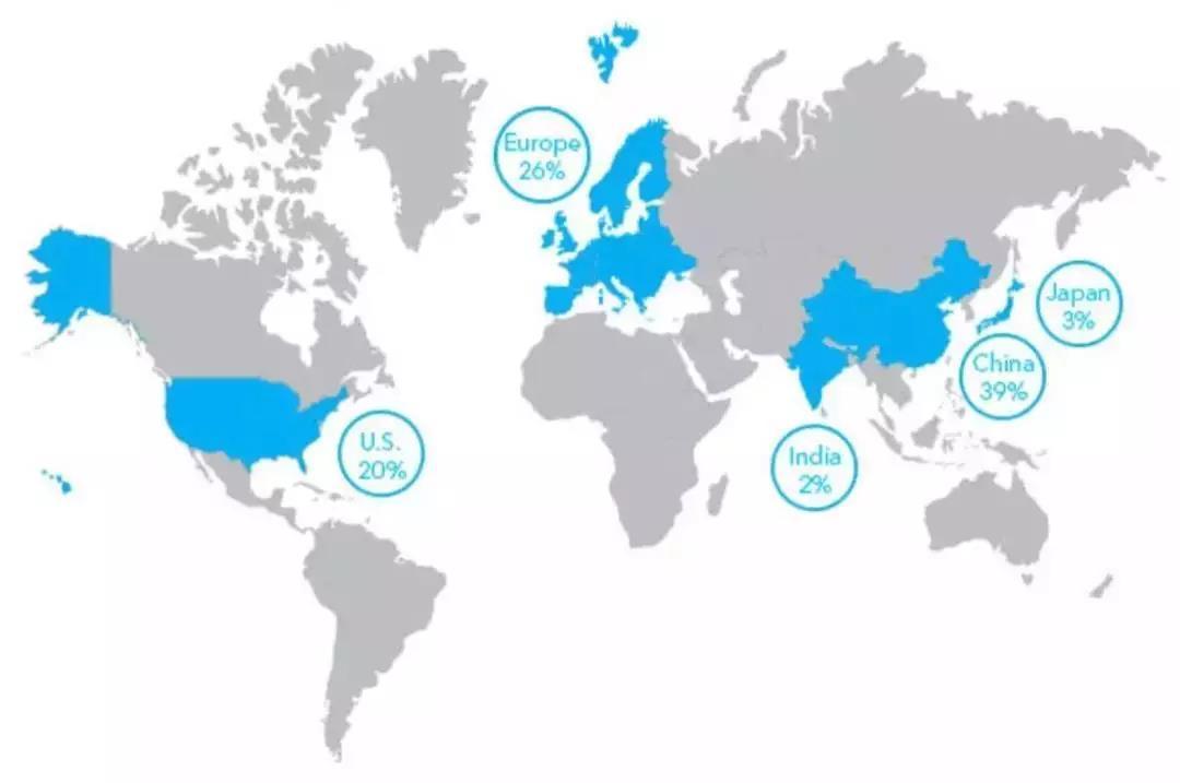 圖1為2030年全球電動(dòng)汽車市場(chǎng)份額預(yù)計(jì),其中中國約占39%。