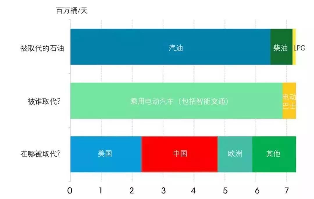 作為全球輕型汽車的主要燃料,94%運(yùn)輸用汽油的需求將被乘用電動(dòng)汽車和智能交通取代。