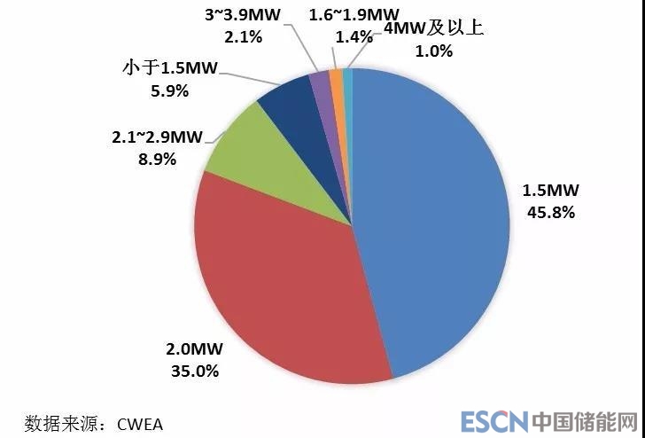 圖11 截至2017年底中國不同功率風電機組累計裝機容量比例