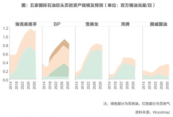 根據伍德麥肯茲估算,埃克森美孚、BP、殼牌、雪佛龍、挪威國油等國際石油巨頭頁巖油產量合計將從2018年的70萬桶/日增長至2026年的220萬桶/日,將占幾家公司原油總產量的20%。(文|侯明揚)