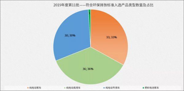 7月9日,北京市生態環境局發布了《2019年度第十一批符合環保排放標準車型目錄的公告》,其中發布的“2019年度第十一批電動車”目錄中共列入100個新能源車型,其中99個純電動車型(含乘用車36個、客車33個、專用車30個);燃料電池客車1個。