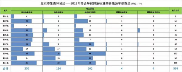 截至目前,北京市2019年累計發布了11批符合環保排放標準車型目錄,每批次車型列入數量如下表所示。