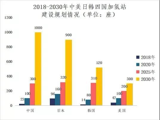 加氫站作為氫能產(chǎn)業(yè)上關(guān)鍵一環(huán),直接制約了燃料電池汽車的發(fā)展。數(shù)據(jù)顯示,2018年全球新增48座加氫站,截止到2018年底,全球加氫站數(shù)目達到369座。其中,日本憑借96座加氫站位居全球第一;德國和美國排名第二和第三,加氫站數(shù)量分別為60座與42座;日、德、美三個國家加氫站共有198座,占全球總數(shù)的54%。此外,截至2018年底,我國加氫站數(shù)量為23座,位居全球第四,根據(jù)目前的規(guī)劃布局,到2020年,我國加氫站數(shù)量將達到100座,燃料電池車輛突破10000輛。