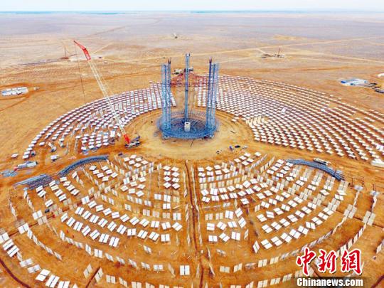 近年來(lái),甘肅酒泉市玉門(mén)市大力發(fā)展綠色新能源,繼風(fēng)電之后,光熱發(fā)電產(chǎn)業(yè)成為了玉門(mén)的新名片。圖為玉門(mén)鑫能5萬(wàn)千瓦光熱項(xiàng)目建設(shè)工地。 楊陽(yáng) 攝