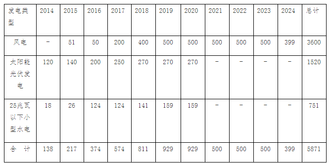 表三:2014-2024年俄羅斯可再生能源發電新增裝機容量目標