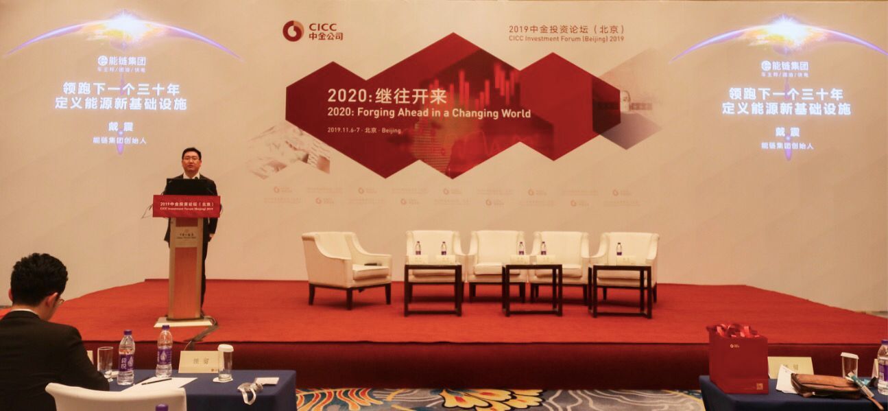 圖注:2019中金投資論壇 能鏈集團(車主邦/團油/快電)創始人戴震發表主旨演講