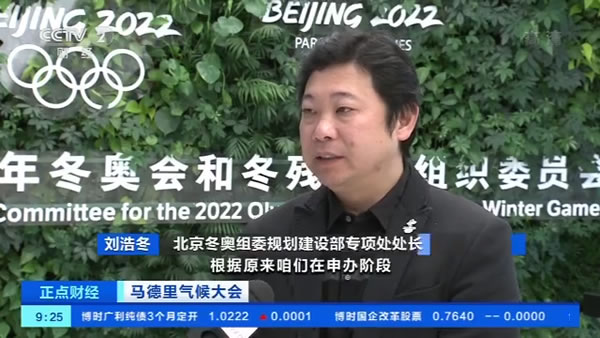 北京冬奧組委規劃建設部專項處處長 劉浩冬:根據原來我們在申辦階段提出的申辦承諾,咱們是在冬奧會和冬殘奧會的賽時使用清潔能源,但是實際在我們操作中,從今年的7月份就開始,到2022年的賽事結束,大概兩年半的時間,我們一直是提供綠色電力,總的減少碳排放指標應該能達到32萬噸。
