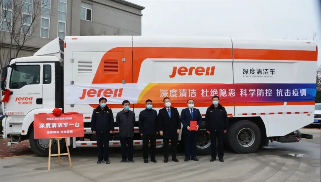 2月26日上午,杰瑞集團向濟南市市中區人民政府捐贈一臺深度清潔車,濟南市市中區副區長殷繼明先生、杰瑞集團副總裁謝猛先生出席此次捐贈儀式,攜手一道堅決打贏這場新型冠狀病毒防控阻擊戰“疫”。