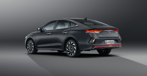 尤其是從鯊魚式前臉延伸出的窗線,已經(jīng)不能純粹靠側(cè)視圖來展現(xiàn),通過正側(cè)45度的視圖,可以看出,窗線從C柱一直蔓延到前牌照,這條側(cè)面特征線無疑是現(xiàn)代汽車Sensuous Sportiness(感性運(yùn)動)這種最新設(shè)計語言的表達(dá)。同時,這也帶來了菲斯塔純電動0.27的超低風(fēng)阻系數(shù),讓能耗進(jìn)一步降低。