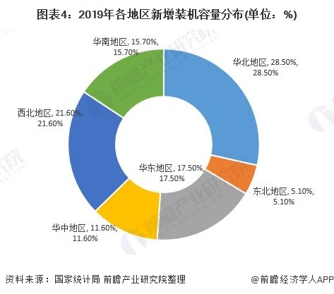 地區分布看,華北地區新增裝機858萬千瓦,同比下降24.0%,占全國的28.5%;東北地區新增裝機153萬千瓦,同比下降60.3%,占全國的5.1%;華東地區新增裝機531萬千瓦,同比下降50.1%,占全國的17.5%;華中地區新增裝機348萬千瓦,同比下降47.6%,占全國的11.6%;西北地區新增裝機649萬千瓦,同比下降1.7%,占全國的21.6%;華南地區新增裝機472萬千瓦,同比下降5.1%,占全國的15.7%。