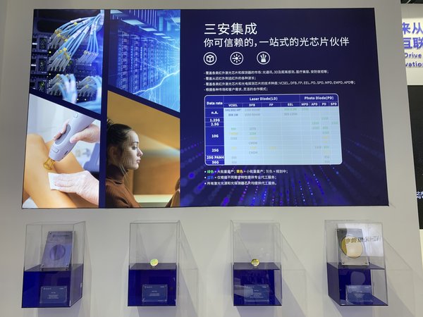 從1.25G、10G到25G,從850、940到1310,三安集成提供多種速率、多種波長的激光光源和光探測芯片代工服務,包括高功率VCSEL、高速率VCSEL、DFB、EEL,和光探測芯片MPD、APD、PD、SPD。