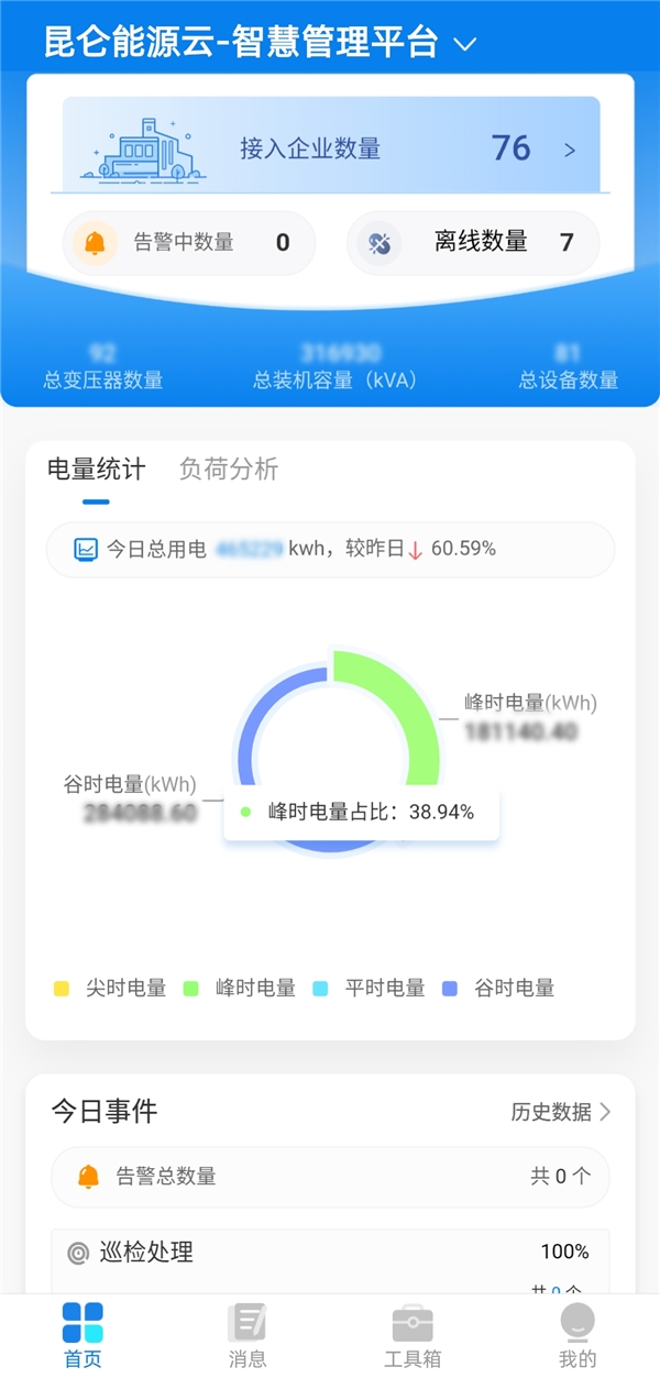 智慧電力管理平臺依托泛能網(wǎng)-電力運維產(chǎn)品,通過標準物聯(lián)接入西南油氣田公司的148個電力系統(tǒng),實時監(jiān)控用電數(shù)據(jù),結(jié)合多種人工智能優(yōu)化算法與專家模型,助力成都中石油昆侖能源發(fā)現(xiàn)電力設(shè)施及生產(chǎn)運行管理過程在安全、可靠、經(jīng)濟、高效等方面存在的問題、風險和提升空間,并通過線上線下運維服務(wù)和策略建議等方式,實現(xiàn)安全生產(chǎn)高效化及電力設(shè)施資產(chǎn)管理的數(shù)字化。