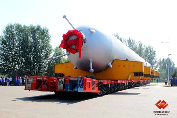 圖為運往吊裝現場的國產化百萬噸級煤液化反應器