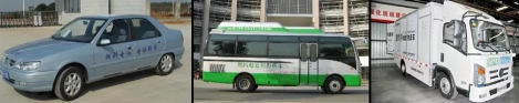東風汽車燃料電池汽車,從左至右依次為:楚天一號、楚天二號、廂式運輸車