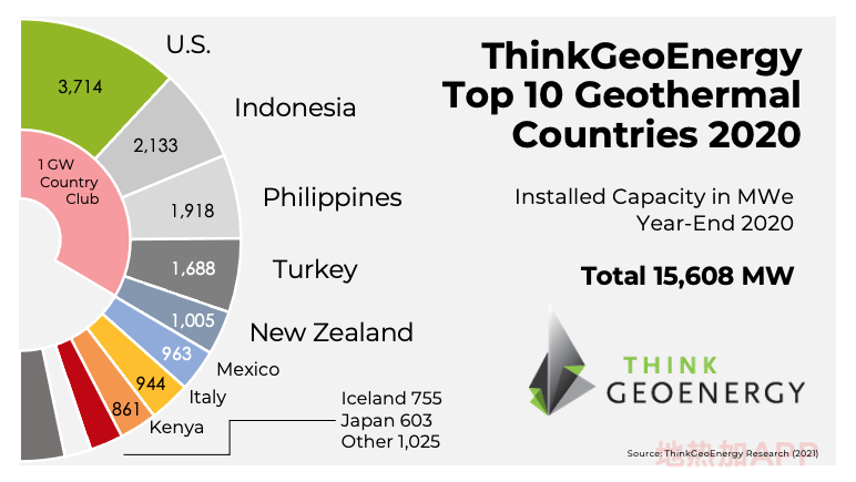 和每年年初一樣,ThinkGeoEnergy 網站根據2020年年底的發電裝機容量,發布了最新的地熱發電前十國家排名。