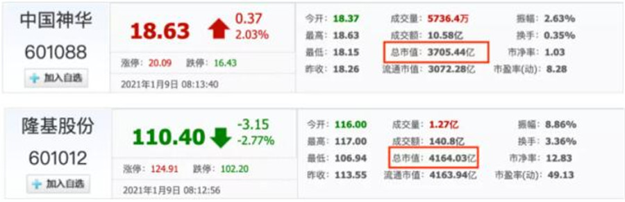 隆基股份PK中國神華